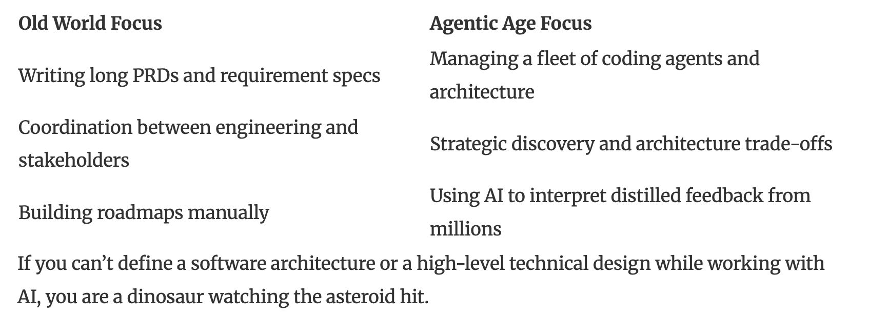 The surviving PMs became “Hands-on Architects”. They use Linear to rank backlogs objectively, removing office politics and doing in 45 minutes what used to take 16 hours. They use Cursor to read entire codebases and Replit Agent to build working 3-screen prototypes on a Saturday morning to show users on Monday.